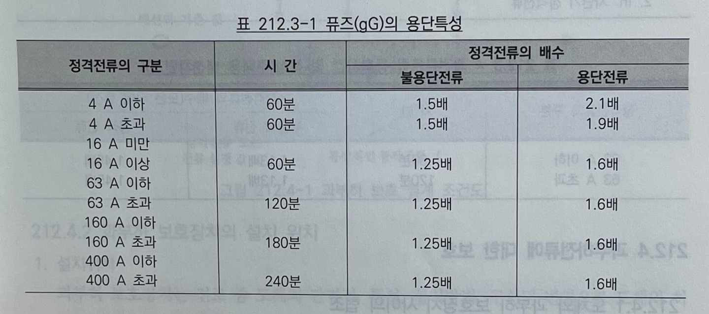 2. 과전류 차단기로 저압 전로에 사용하는 범용의 퓨즈(「전기용품 및 생활용품 안전관리법」에서 규정하는 것을 제외한다)는 표 212.3-1에 적합한 것이어야 한다.