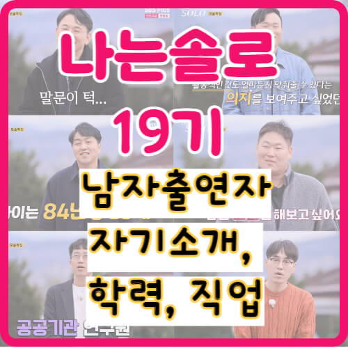 나는 솔로 19기 남자 출연자들의 자기소개를 정리해봤습니다.