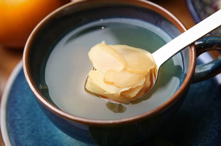 아침에 따뜻한 생강차를 연하게 우려 마시는 것도 좋고, 식사 시 생강 한 조각을 생으로 씻어 먹어도 좋습니다.